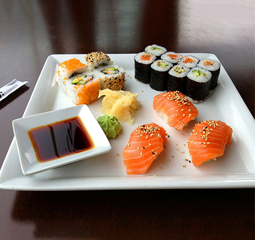 California Roll (4), Tuna Roll (6), Sashimi (3) and Edamame