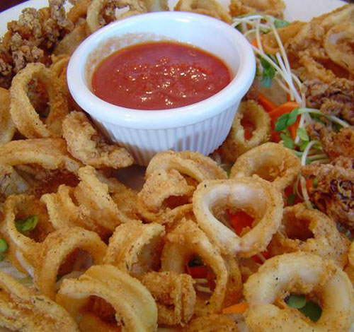 Fried battered calamari ring served with sweet chili sauce