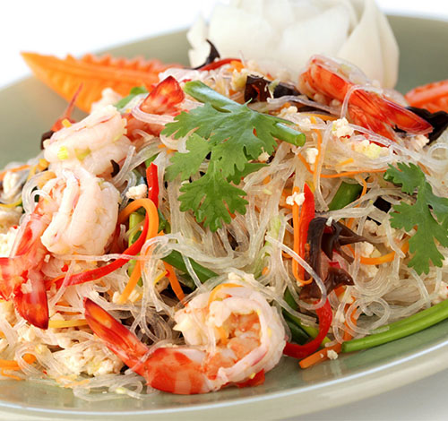Succulent shrimp, lemongrass, galangal, kaffir lime, mushrooms, and a delicate balance of sweet, sour, and herbal flavors